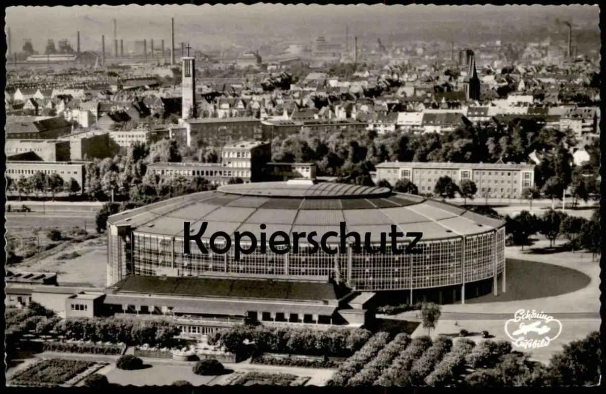 ALTE POSTKARTE DORTMUND WESTFALENHALLE LUFTBILD