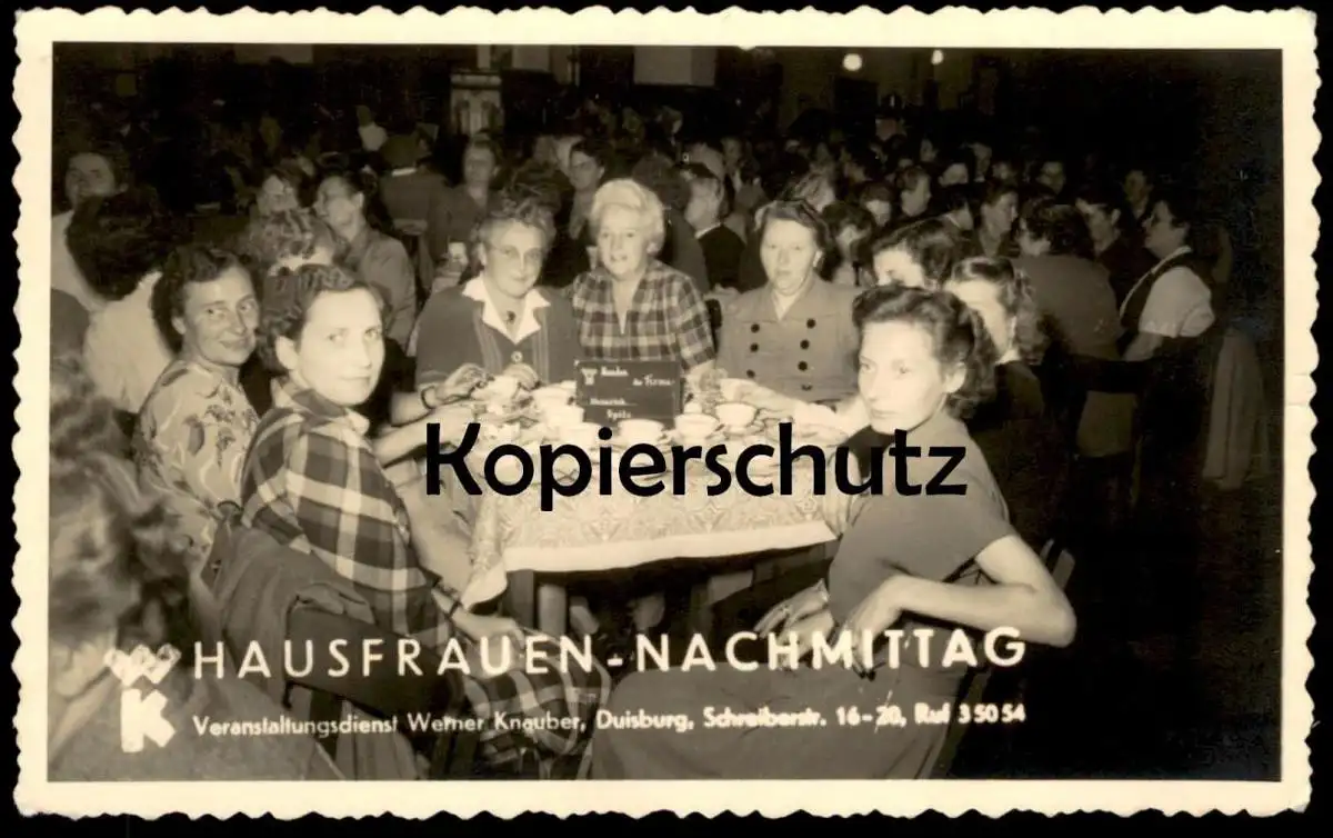 ÄLTERE POSTKARTE DUISBURG HAUSFRAUEN-NACHMITTAG KUNDEN HEINRICH SPITZ VERANSTALTUNGSDIENST KNAUBER KAFFEE PORZELLAN AK