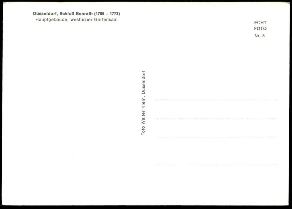 ÄLTERE POSTKARTE DÜSSELDORF SCHLOSS BENRATH HAUPTGEBÄUDE WESTLICHER GARTENSAAL