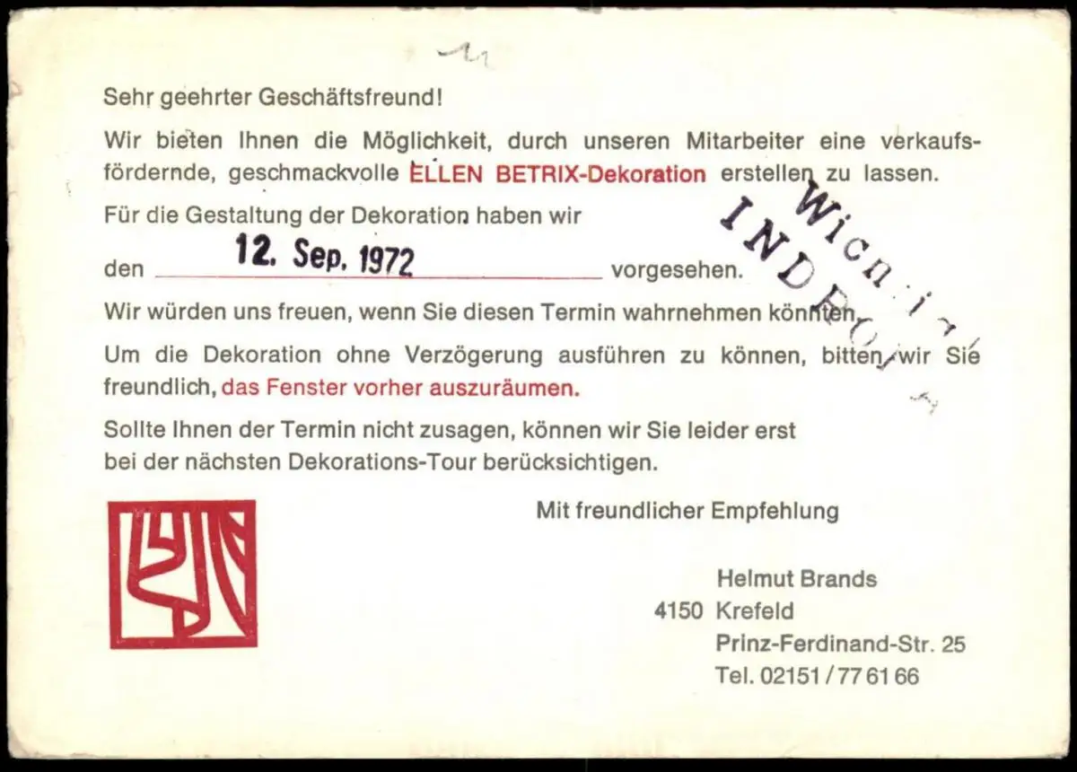 ÄLTERE POSTKARTE ELLEN BETRIX DEKORATIONS-DIENST KREFELD Verlag: unbekannt