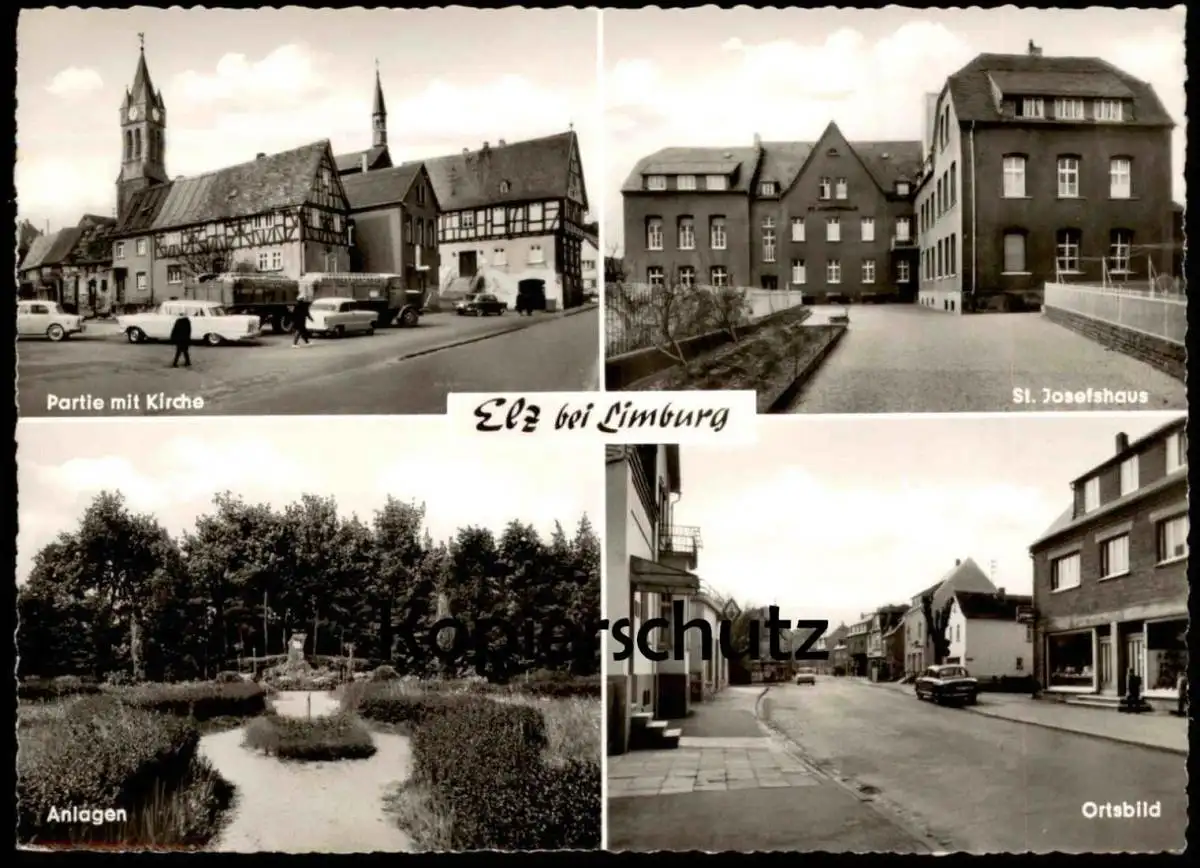 ÄLTERE POSTKARTE ELZ BEI LIMBURG ST. JOSEFSHAUS ORTSBILD ANLAGEN PARTIE MIT KIRCHE WESTERWALD Ansichtskarte AK postcard