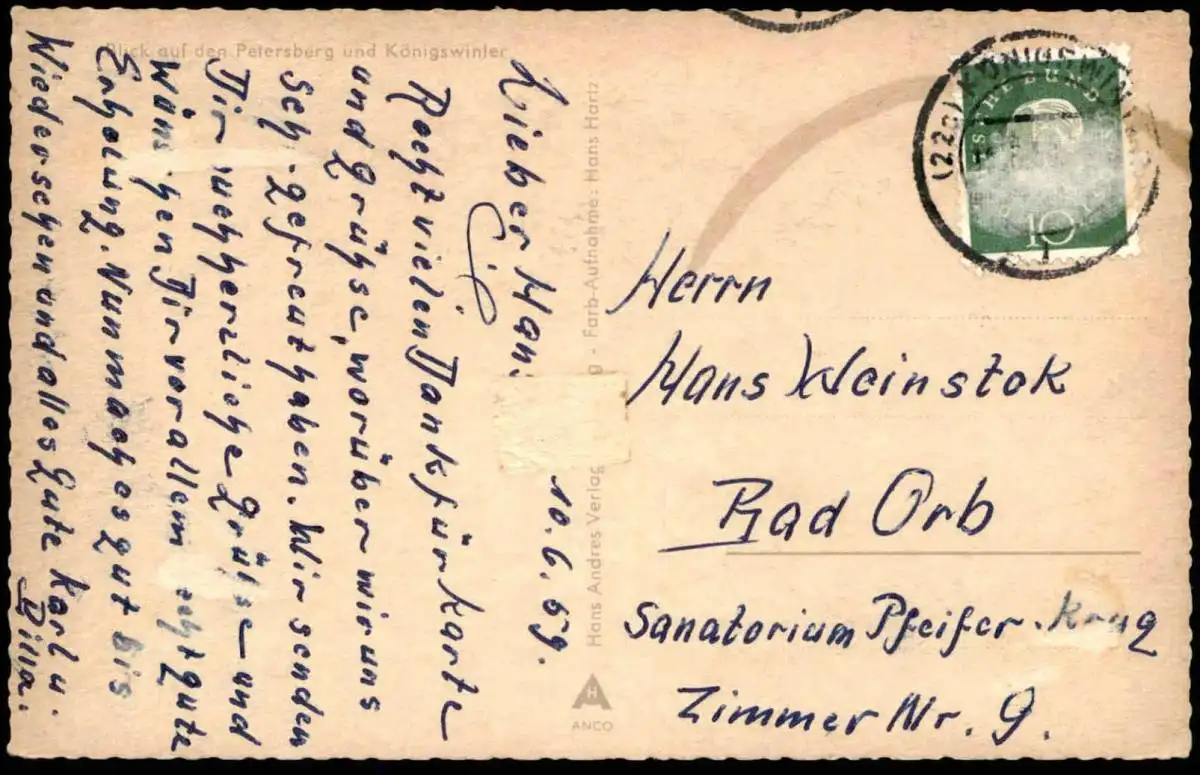 Gelaufen: 10.06.1969 mit Stempel Königswinter nach Bad Orb