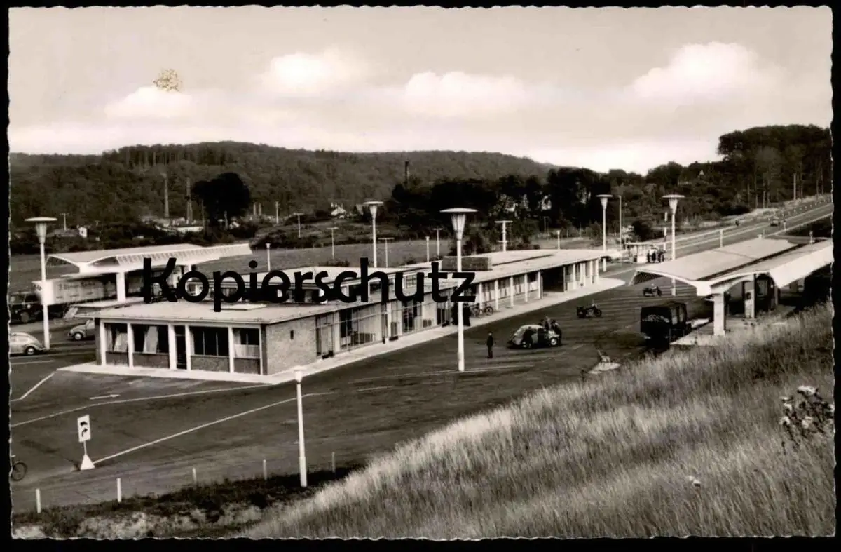 ÄLTERE POSTKARTE FLENSBURG GRENZE AUTOBAHN LKW VW KÄFER Motorrad Grense Border frontière Zoll Auto pickup motorcycle cpa
