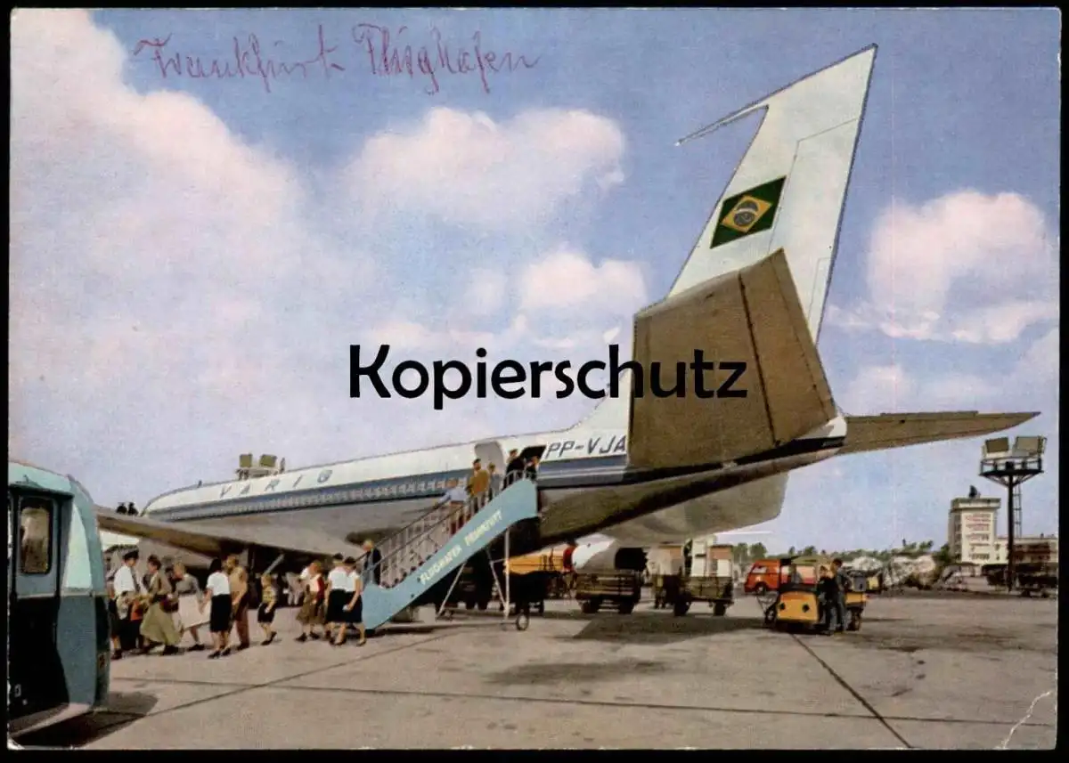 ÄLTERE POSTKARTE FLUGHAFEN FRANKFURT AM MAIN ABFERTIGUNG VARIG BRASILIEN Flugzeug Airport Airplane Aircraft Brazil cpa