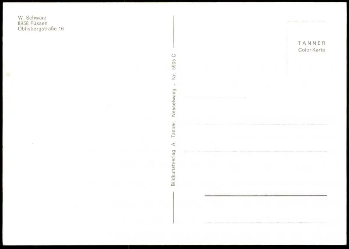 ÄLTERE POSTKARTE FÜSSEN MODELLEISENBAHN W. SCHWARZ OBLISBERGSTRASSE 16 ZUG BAHN MODELLBAHNVerlag: A. Tanner, Nesselwang