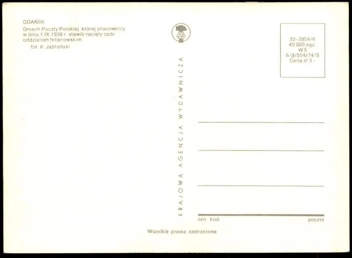 ÄLTERE POSTKARTE GDANSK GMACH POCZTY POLSKIEJ PRACOWNICY W DNIU 01.09.1939Verlag: Krajowa Agencia Wydawnicza