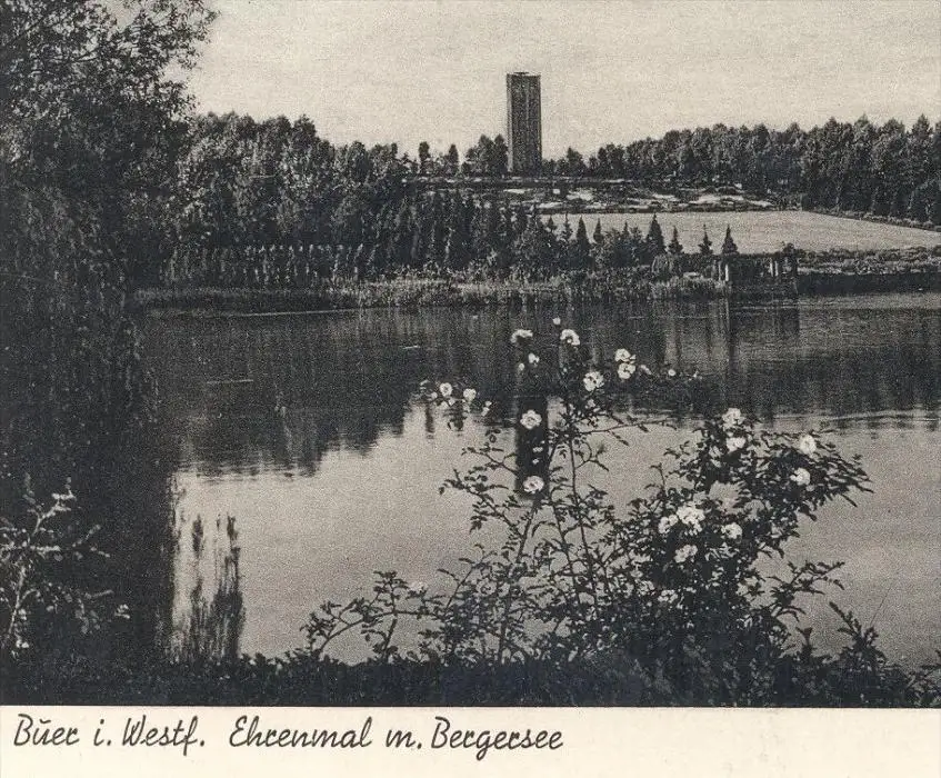 ÄLTERE POSTKARTE GELSENKIRCHEN BUER EHRENMAL MIT BERGERSEE