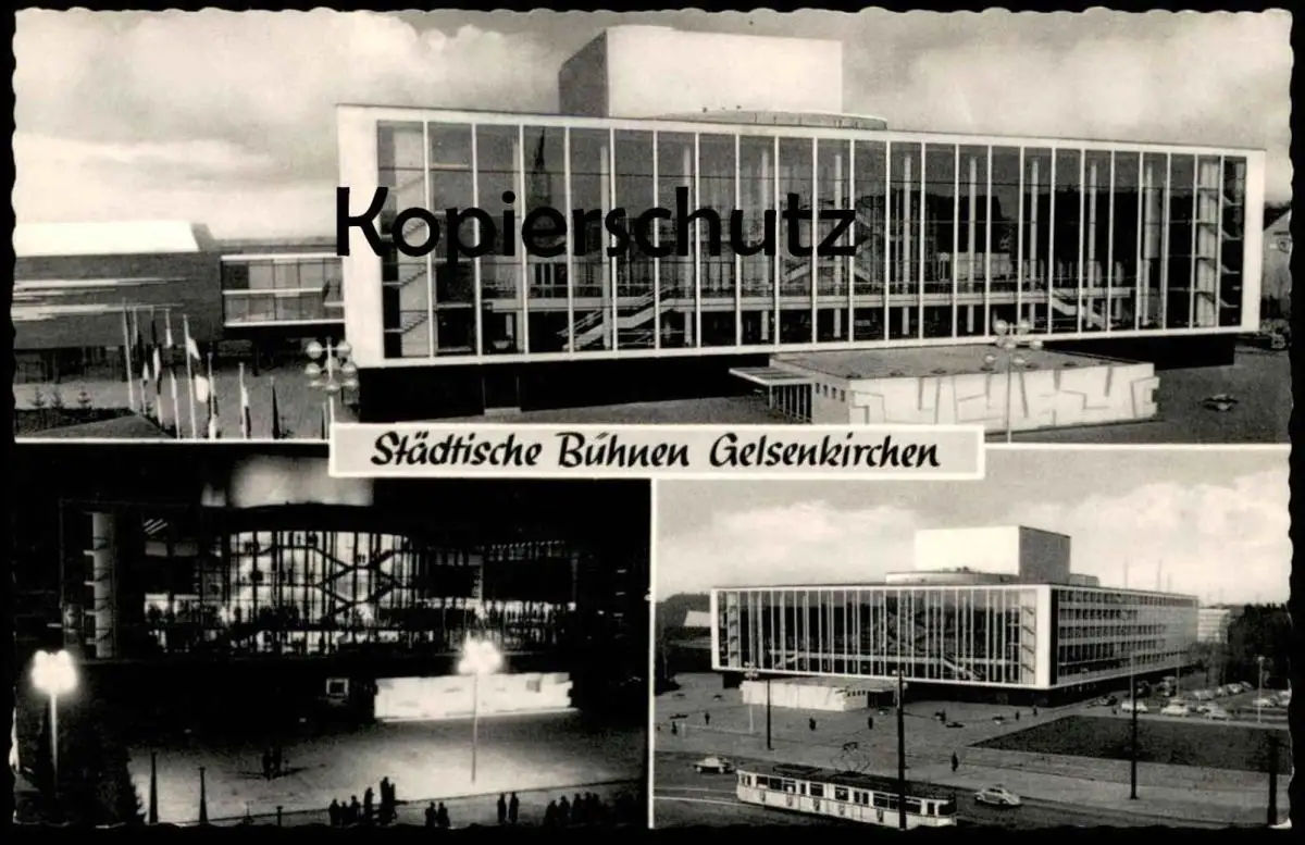 ÄLTERE POSTKARTE GELSENKIRCHEN STÄDTISCHE BÜHNEN Theater bei Nacht at night Theatre Strassenbahn Tram Tramway postcard