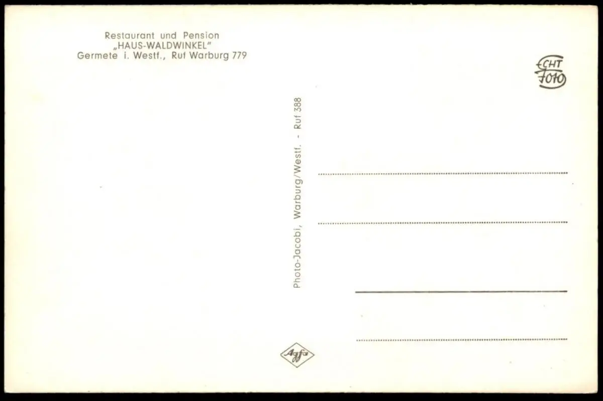 ÄLTERE POSTKARTE GERMETE RESTAURANT UND PENSIONHAUS WALDWINKEL RUF WARBURG