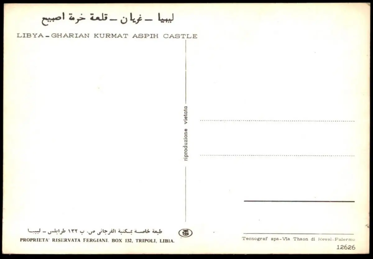ÄLTERE POSTKARTE GHARIAN KURMAT ASPIH CASTLE LIBYAVerlag: Fergiani, Tripoli Libia