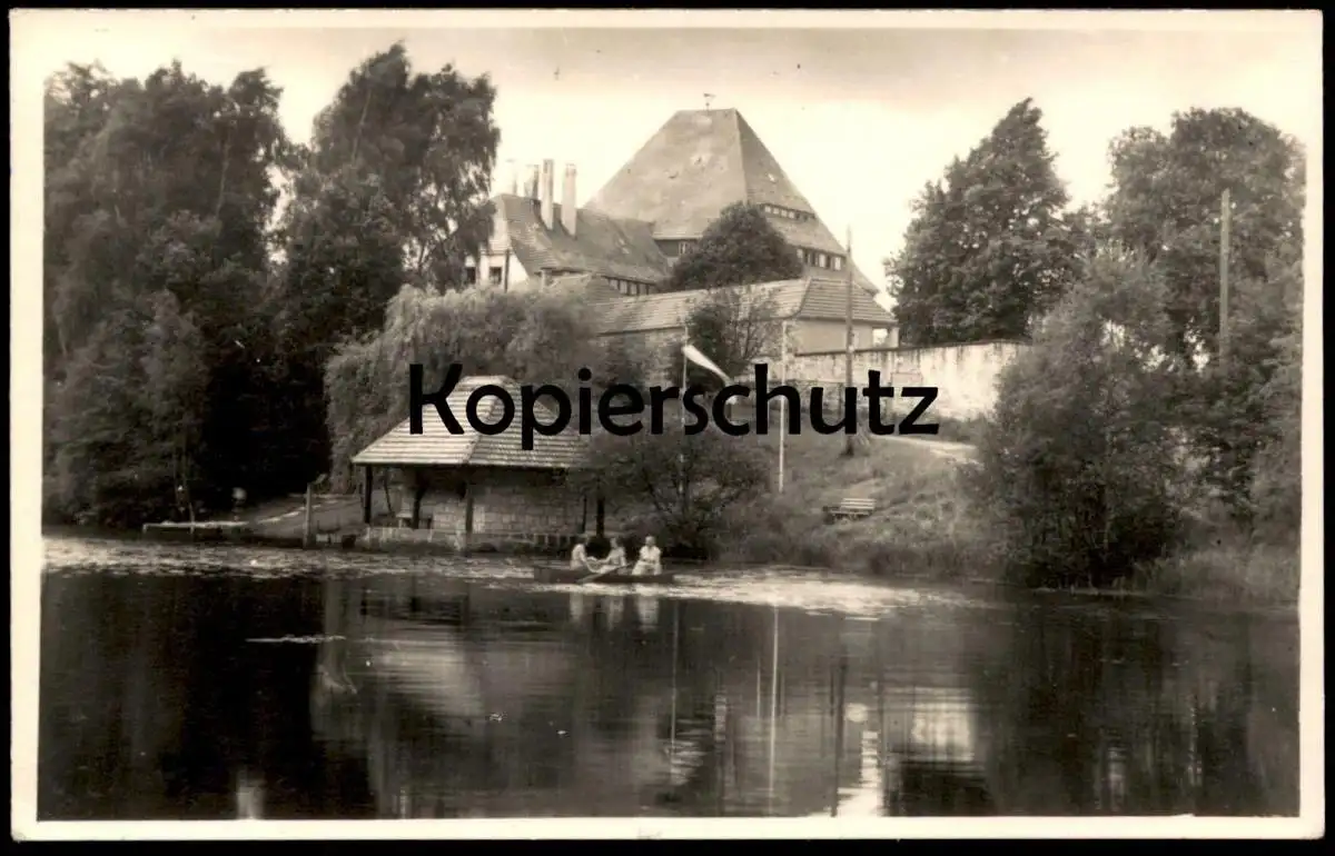 ÄLTERE POSTKARTE GRILLENBURG ELSA-FENSKE-HEIM HARTHA THARANDT DREI FRAUEN IM RUDERBOOT Sachsen Ansichtskarte AK postcard
