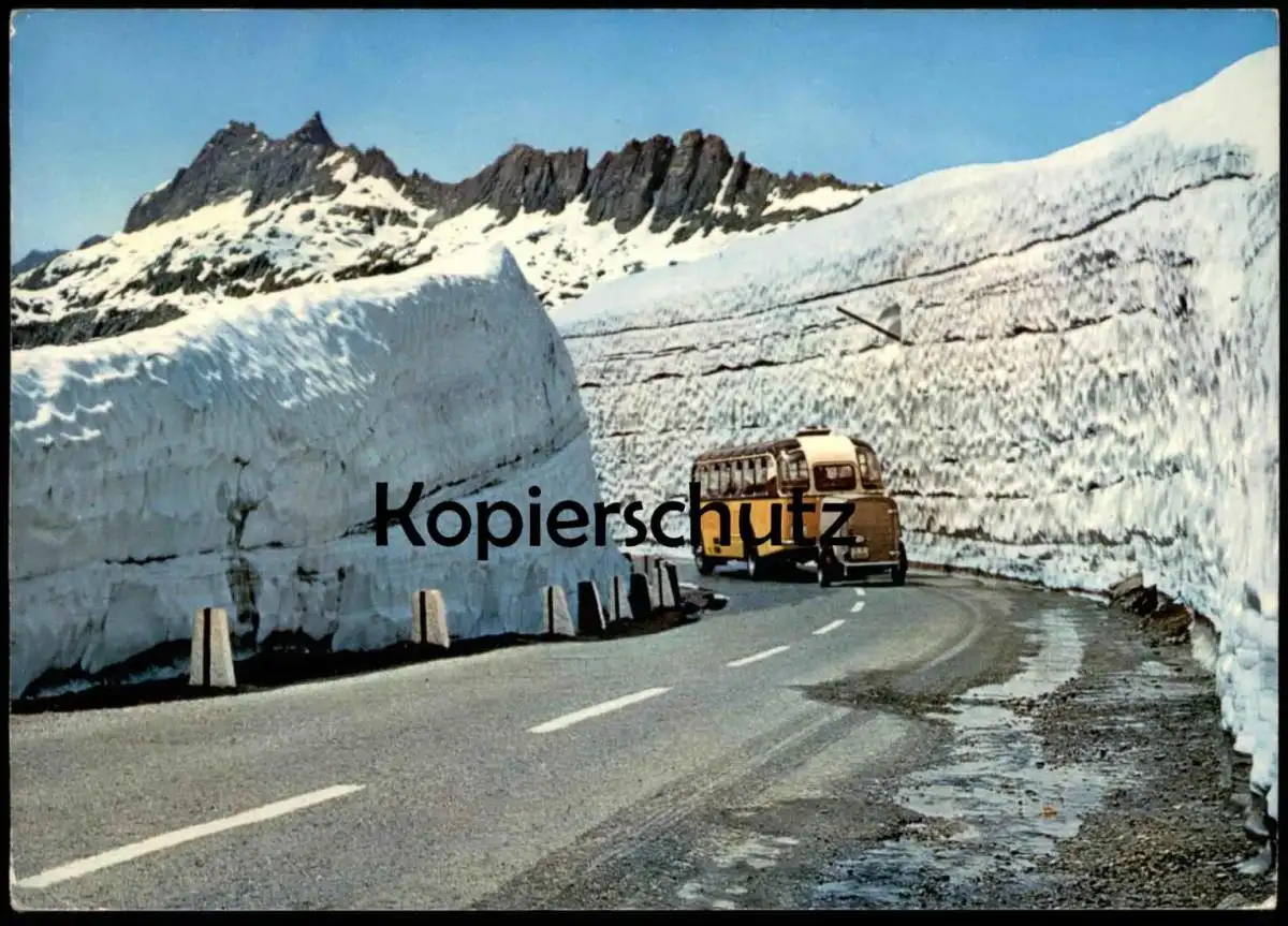 ÄLTERE POSTKARTE GRIMSEL-PASSHÖHE IM FRÜHSOMMER BRUNBERGE BUS MIT ANHÄNGER POSTBUS Ansichtskarte AK cpa postcard
