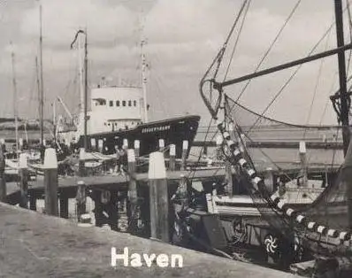 ÄLTERE POSTKARTE GROETEN VAN TERSCHELLING HAVEN KAMPEREN CAMPING SCHIFF FRIESLAND ship Fishing boat cpa postcard AK