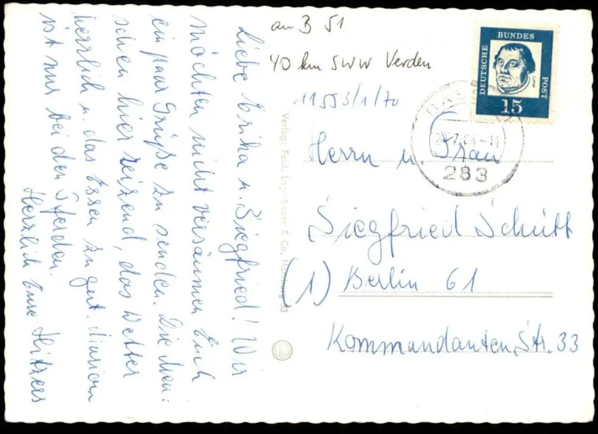 Gelaufen: 20.07.1964 mit Stempel Bassum nach Berlin