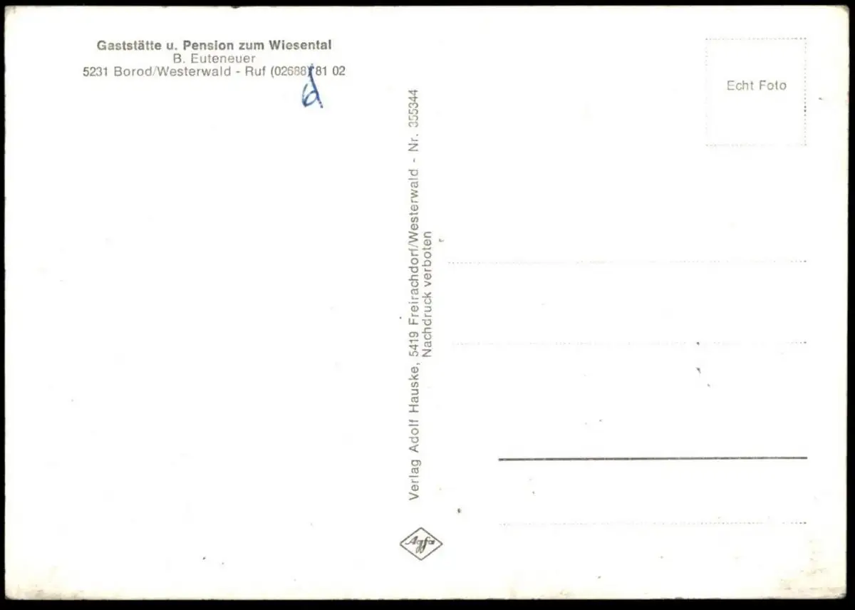 ÄLTERE POSTKARTE GRUSS AUS BOROD IM WESTERWALD GASTSTÄTTE UND PENSION ZUM WIESENTAL B. EUTENEUER Hachenburg cpa postcard