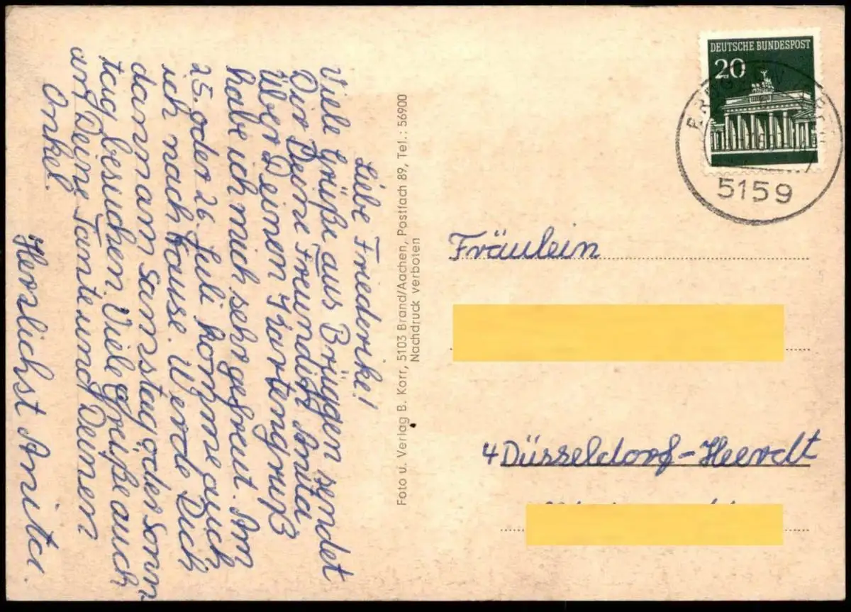 Gelaufen: xx.07.1969 nach DüsseldorfErhaltung (s. Scan): gut / 915482