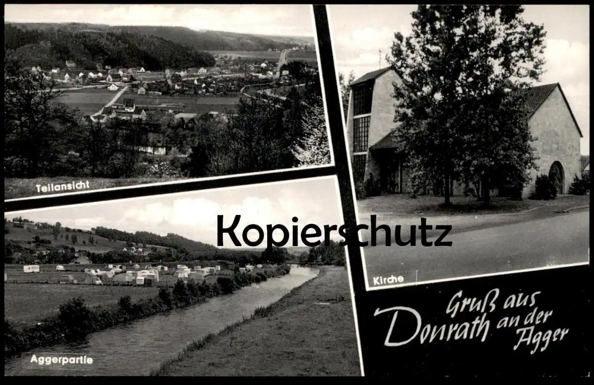 ÄLTERE POSTKARTE GRUSS AUS DONRATH AN DER AGGER KIRCHE TEILANSICHT AGGERPARTIE LOHMAR Ansichtskarte AK cpa postcard