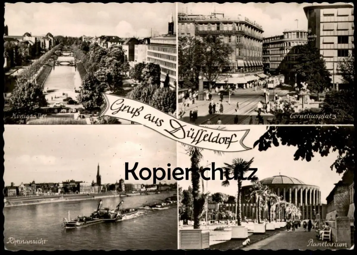 ÄLTERE POSTKARTE GRUSS AUS DÜSSELDORF KÖNIGSALLEE RHEINANSICHT PLANETARIUM CORNELIUSPLATZVerlag: Walter Bales, Köln-Klettenberg