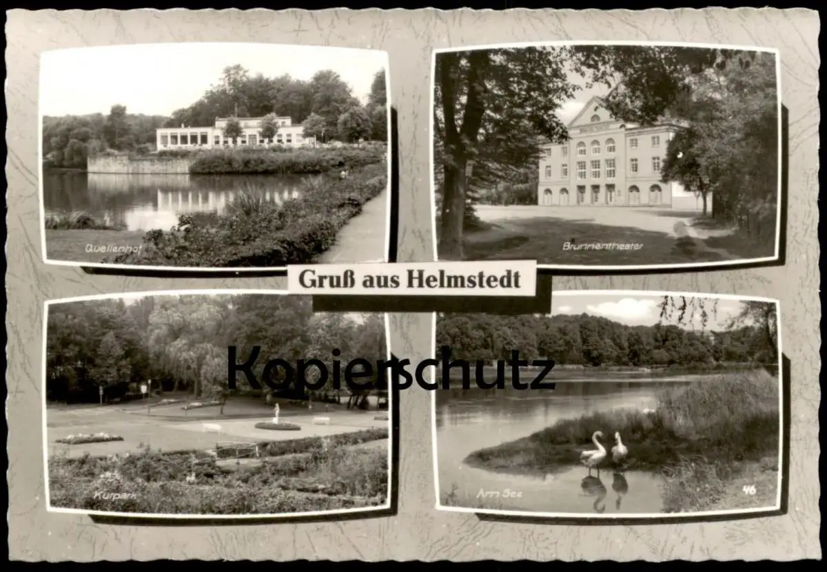 ÄLTERE POSTKARTE GRUSS AUS HELMSTEDT QUELLENHOF BRUNNENTHEATER KURPARK AM SEE Ansichtskarte postcard cpa AK