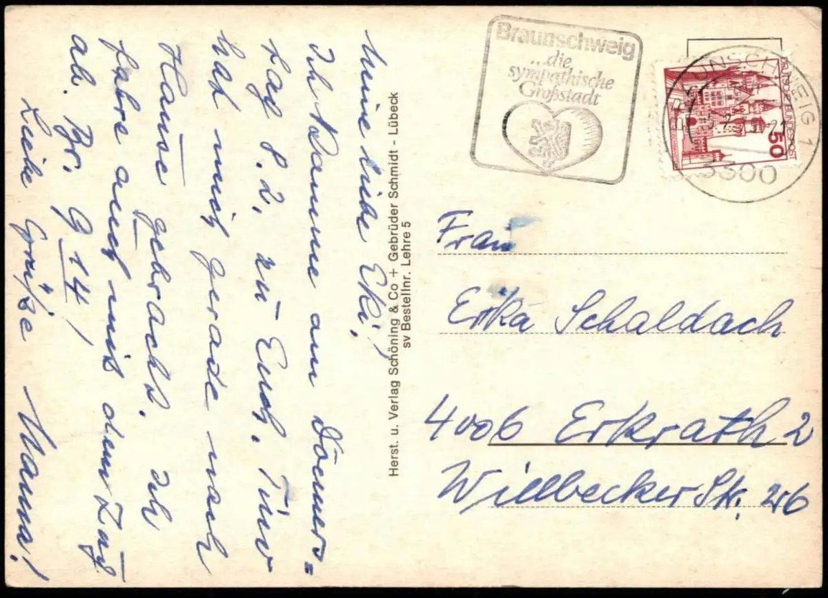 Verlag: Schöning + Schmidt, LübeckGelaufen: 05.07.1979 mit Stempel Braunschweig nach ErkrathErhaltung (s. Scan): gut, Ecke links oben minimal bestoßen / 915070