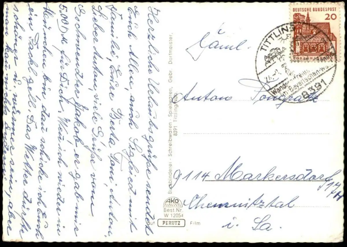 Gelaufen: 24.08.196x mit Stempel Tittling nach MarkendorfErhaltung (s. Scan): gut / 915133