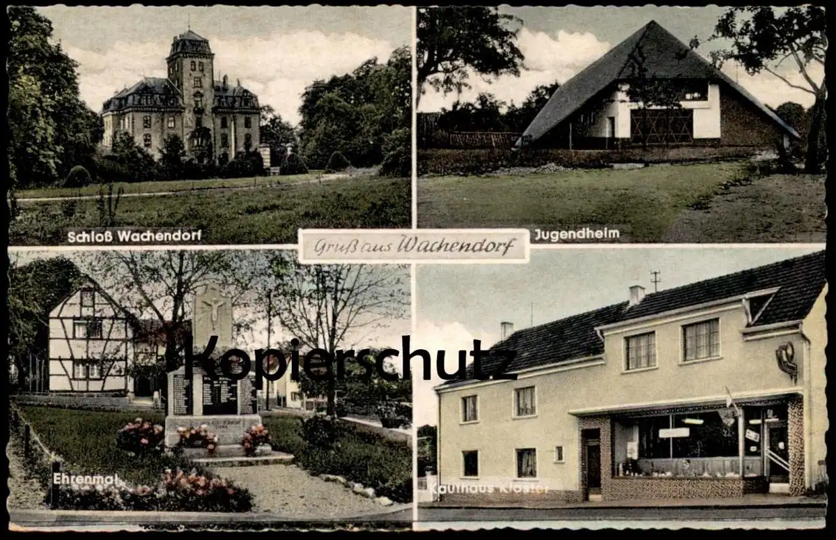 ÄLTERE POSTKARTE GRUSS AUS WACHENDORF ÜBER EUSKIRCHEN JUGENDHEIM KAUFHAUS KLOSTER EHRENMAL SCHLOSS
