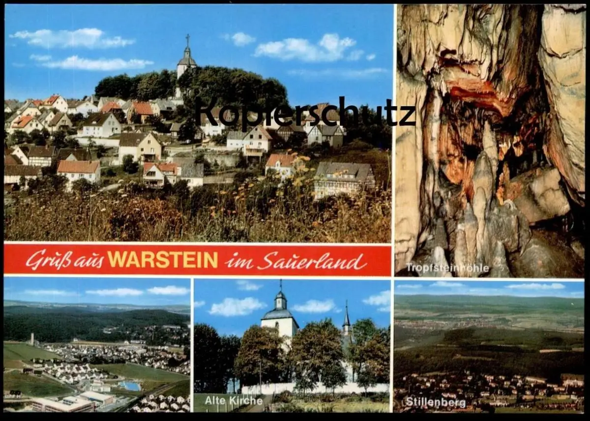 ÄLTERE POSTKARTE GRUSS AUS WARSTEIN IM SAUERLAND TROPFSTEINHÖHLE ALTE KIRCHE STILLENBERG Ansichtskarte cpa postcard AK