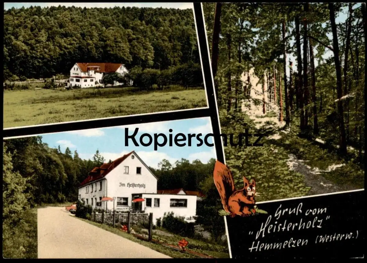 ÄLTERE POSTKARTE GRUSS VOM HEISTERHOLZ HEMMELZEN WESTERWALD EICHHÖRNCHEN