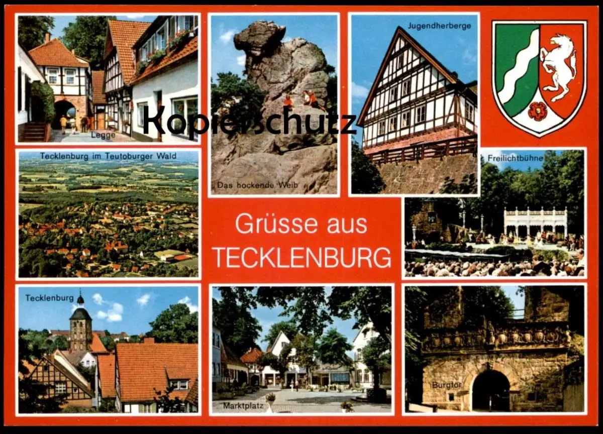 ÄLTERE POSTKARTE GRÜSSE AUS TECKLENBURG MARKTPLATZ BURGTOR LEGGE NRW FELS Ansichtskarte postcard AK cpa
