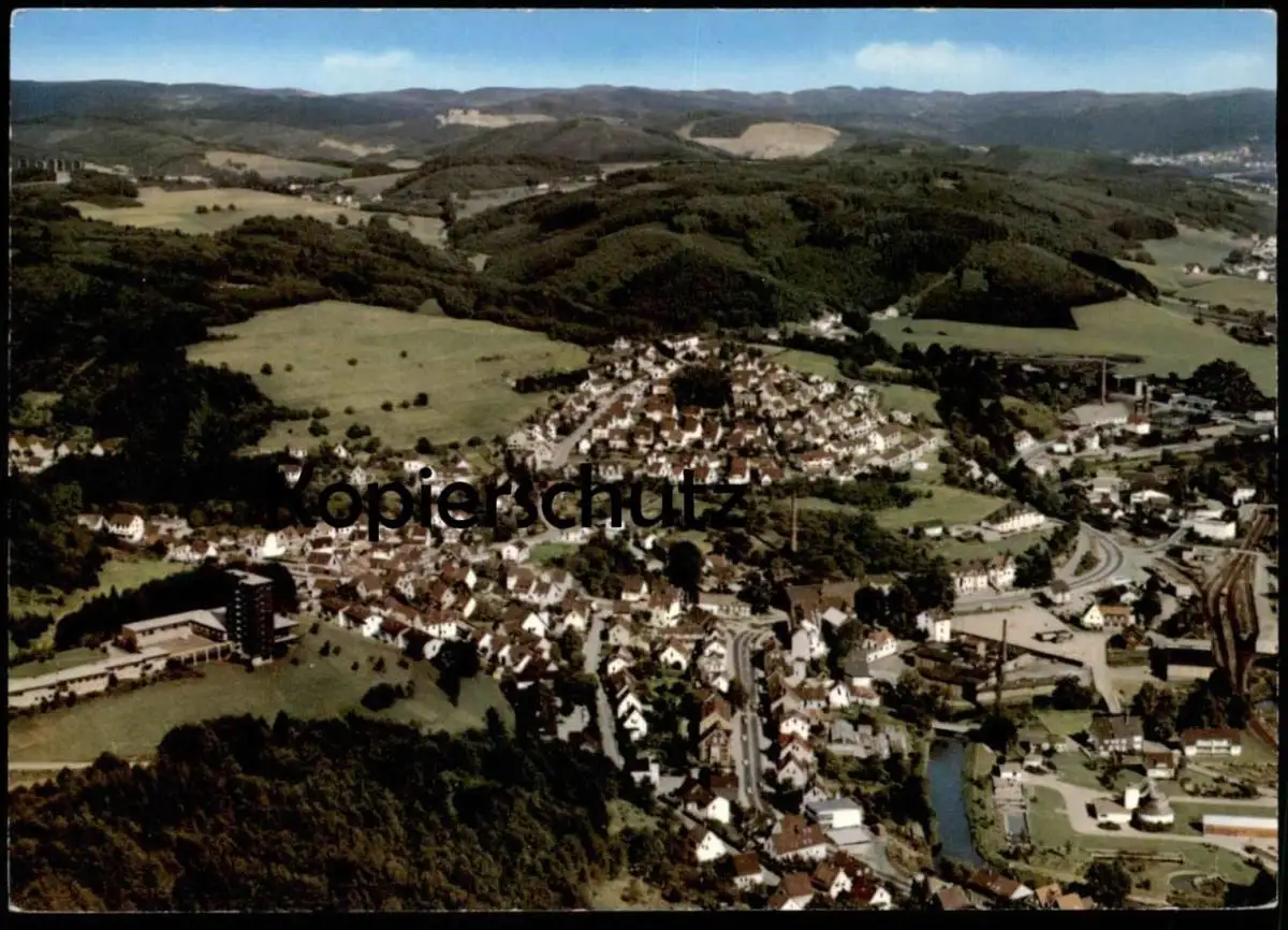 ÄLTERE POSTKARTE GUMMERSBACH NIEDERSESSMAR IM OBERBERGISCHEN LUFTBILD MIT BAHNHOF gare station Ansichtskarte postcard AK