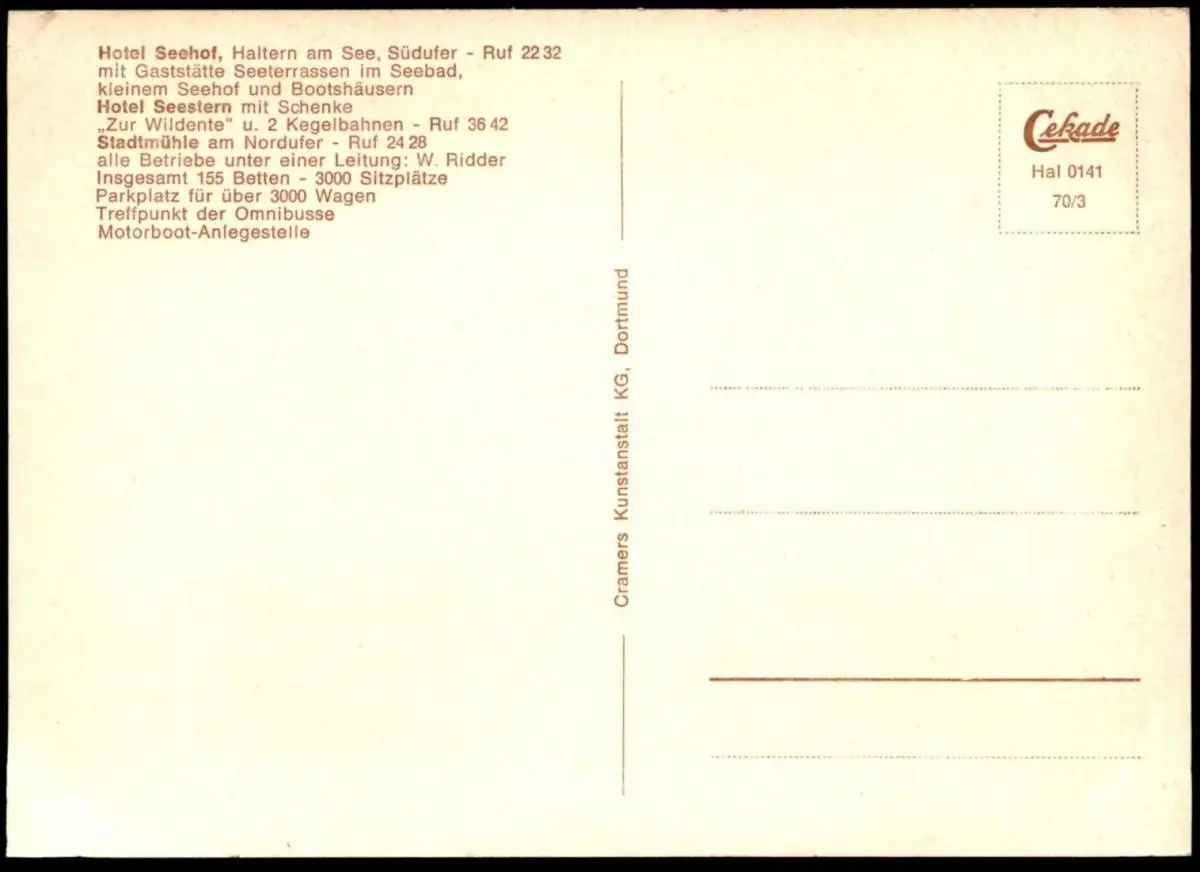 ÄLTERE POSTKARTE HALTERN AM SEE DREI HOTELS UNTER EINER LEITUNG VW KÄFER CABRIO HOTEL SEESTERN SEEHOF STADTMÜHLE AK cpa