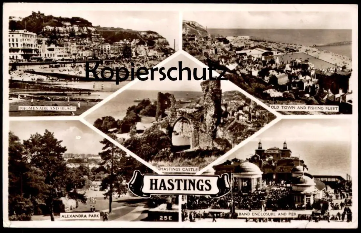 ÄLTERE POSTKARTE HASTINGS OLD TOWN AND FISHING FLEET ALEXANDRA PARK BAND ENCLOSURE AND PIER postcard Ansichtskarte cpa