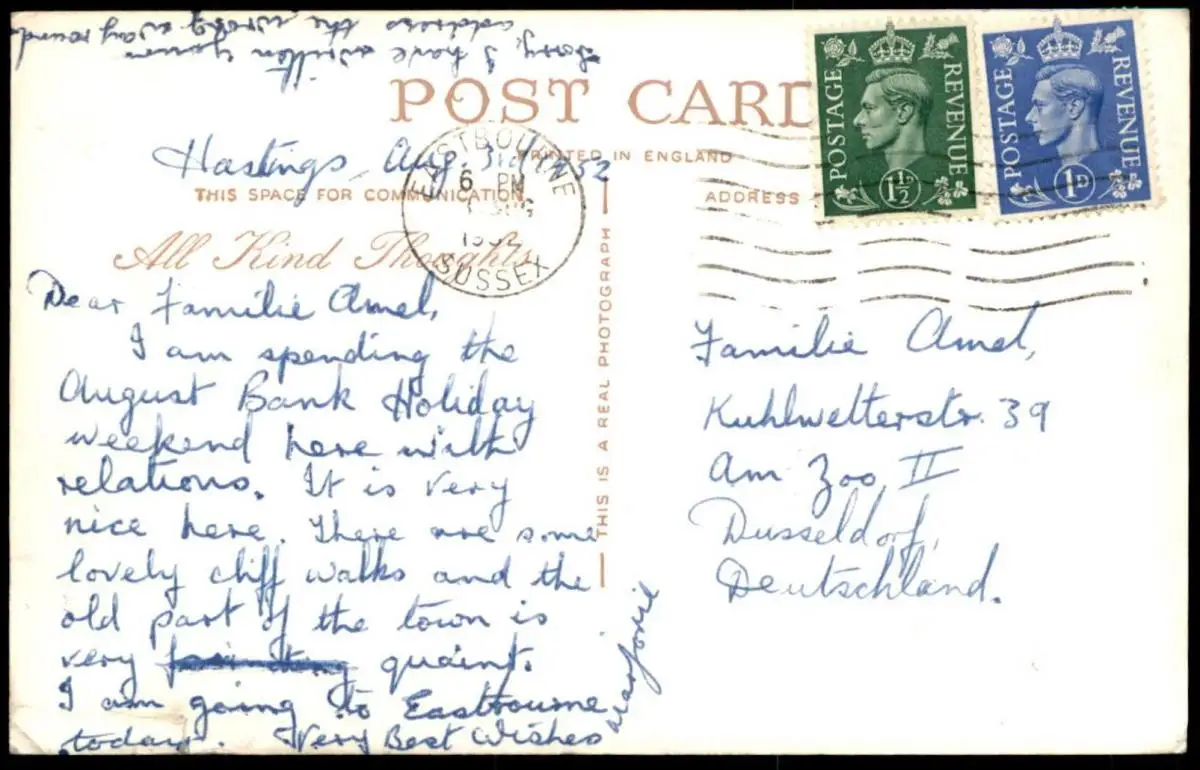 Gelaufen: xx.xx.1962 mit Stempel Eastbourne nach Düsseldorf