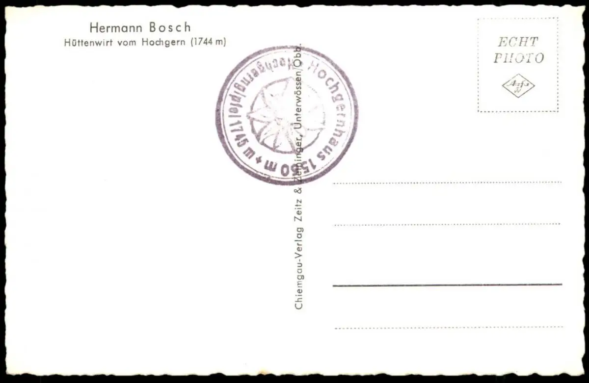 ÄLTERE POSTKARTE HERMANN BOSCH HÜTTENWIRT VOM HOCHGERN 1744 M AUTOGRAMM autograph Traunstein AK Ansichtskarte postcard