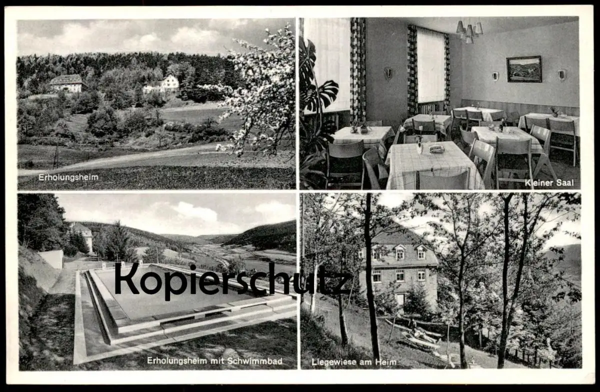 ÄLTERE POSTKARTE PENSION DIEDRICH HETTIGENBEUREN SCHWIMMBAD KLEINER SAAL LIEGEWIESE ERHOLUNGSHEIM