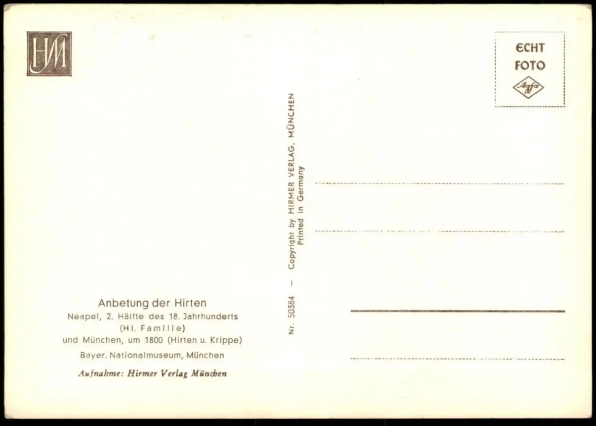ÄLTERE POSTKARTE HIRTEN UND KRIPPE MÜNCHEN UM 1800 HEILIGE FAMILIE NEAPEL ANBETUNG DER HIRTEN AK crib couvent christmas