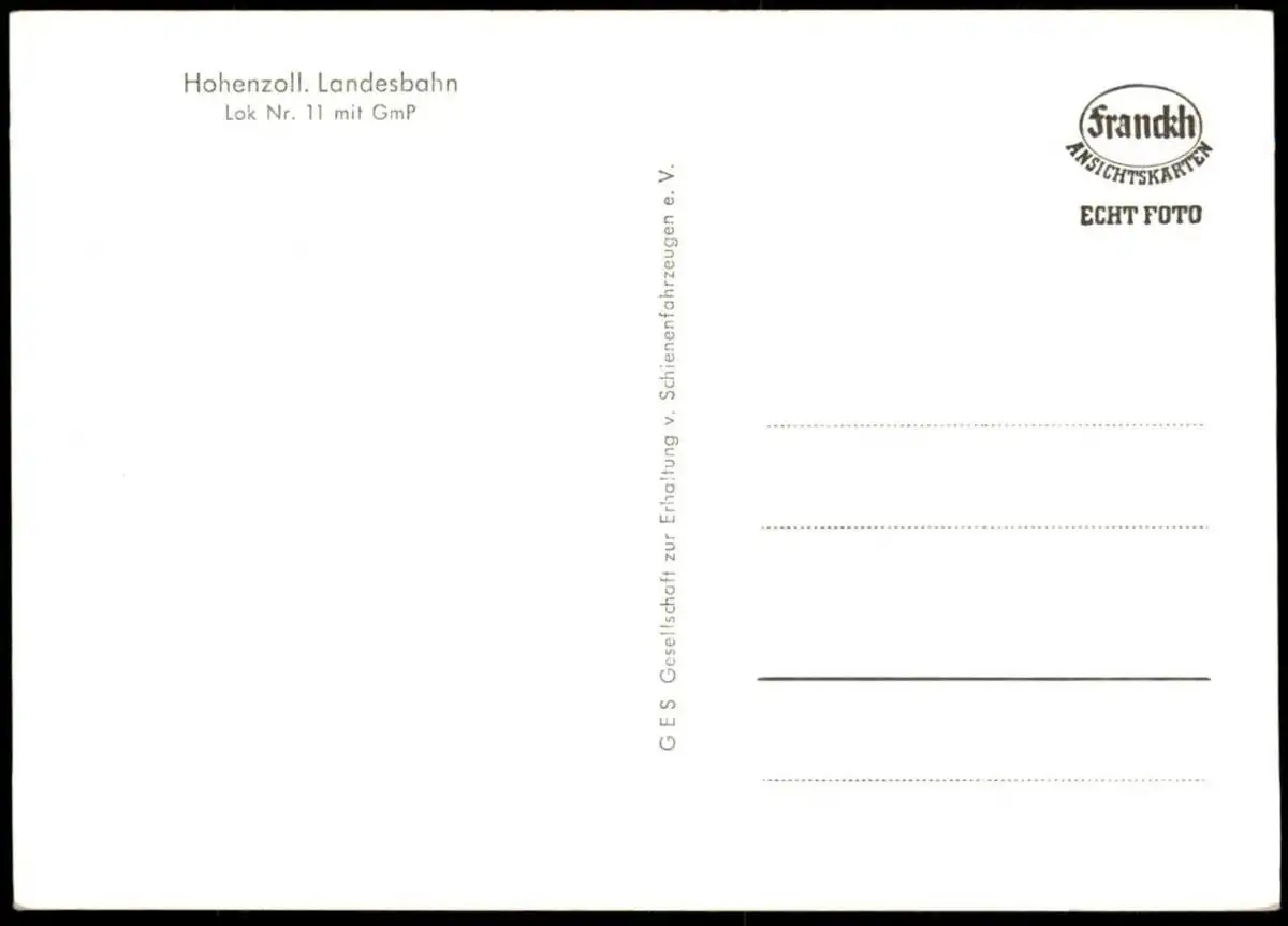 ÄLTERE POSTKARTE HOHENZOLLERISCHE LANDESBAHN LOK NR. 11 GMP GÜTERZUG MIT PERSONENBEFÖRDERUNGVerlag: G E S Gesellschaft zur Erhaltung von Schienenfahrzeugen, Franckh Ansichtskarte