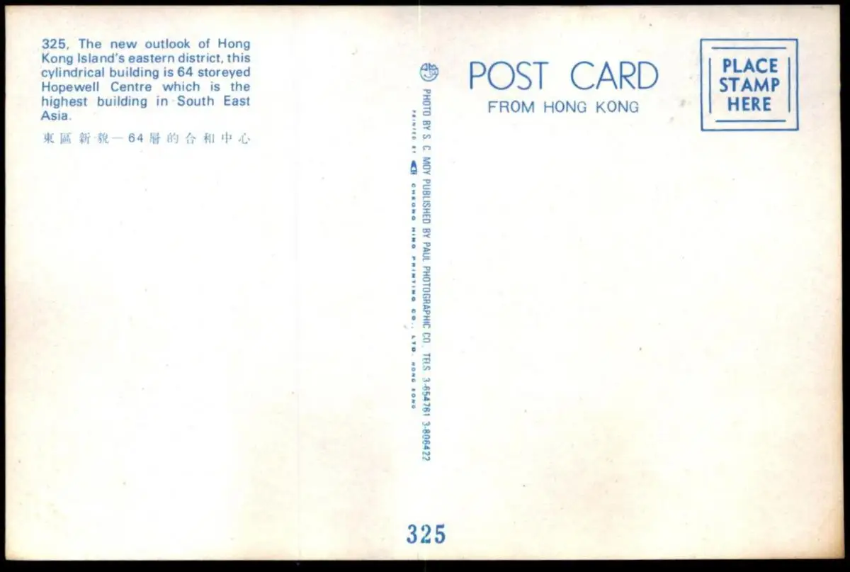 ÄLTERE POSTKARTE HONGKONG THE NEW OUTLOOK OF ISLAND'S EASTERN DISCTRICT HOPEWELL CENTER Hong Kong China Chine postcard