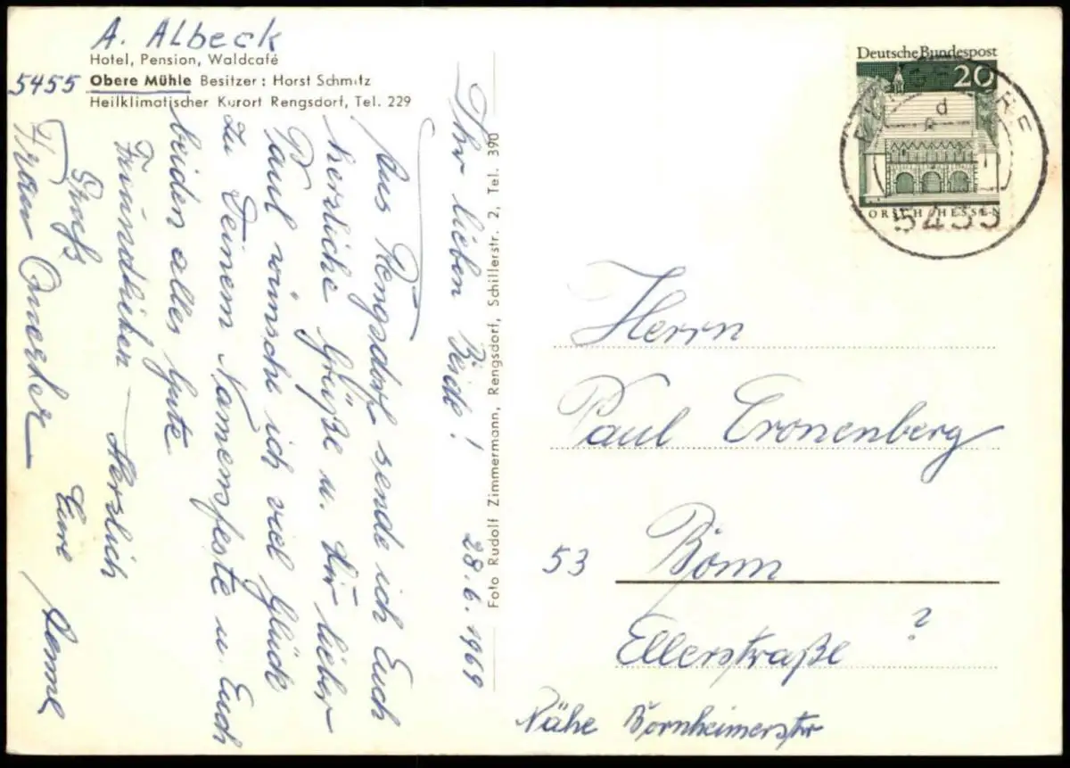 ÄLTERE POSTKARTE HOTEL PENSION CAFÉ OBERE MÜHLE RENGSDORF WALDBREITBACH WIEDTAL BESITZER HORST SCHMITZ HollywoodschaukelVerlag: Rudolf Zimmermann, Rengsdorf