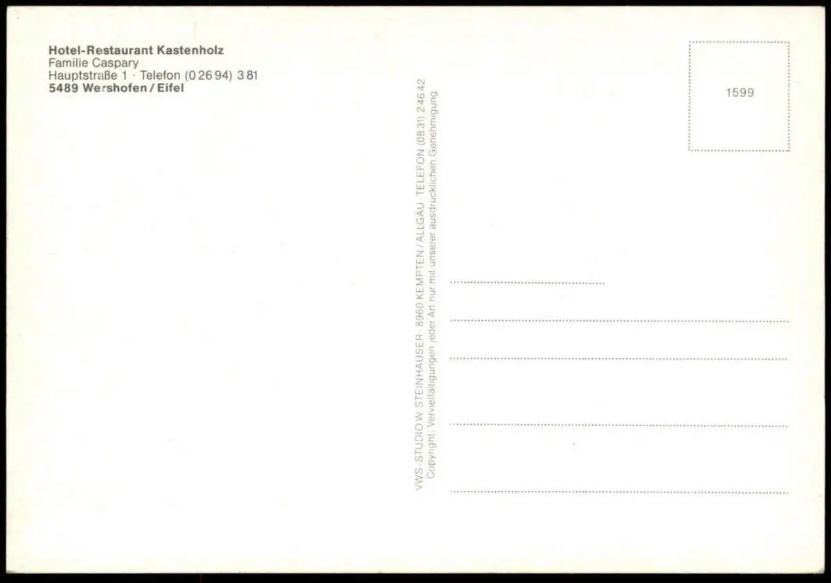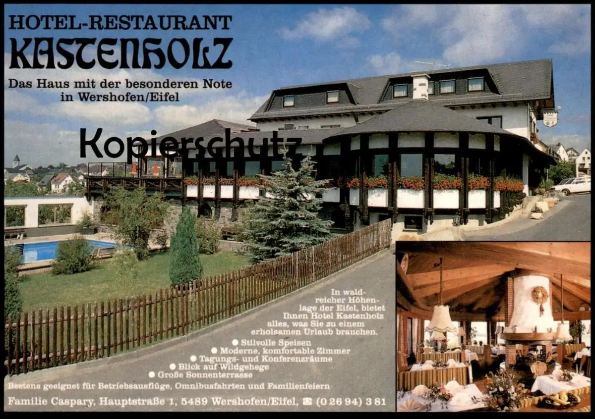 ÄLTERE POSTKARTE HOTEL RESTAURANT KASTENHOLZ WERSHOFEN EIFEL FAMILIE CASPARYVerlag: VWS Studio W. Steinhauser, Kempten