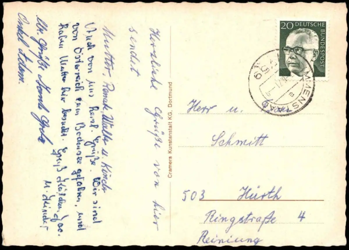 Gelaufen: 03.06.1971 mit Stempel Immenstaad nach Hürth