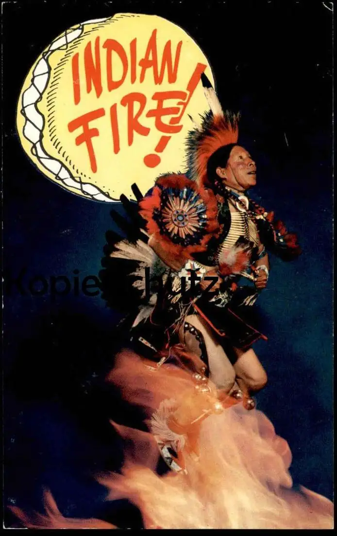 ÄLTERE POSTKARTE INDIAN FIRE Cief Indianer Indians Indien Kopfschmuck feather headdress coiffe Feuer feu cpa postcard