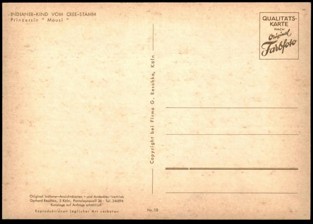 ÄLTERE POSTKARTE INDIANER KIND VOM CREE STAMM PRINZESSIN MAUSI