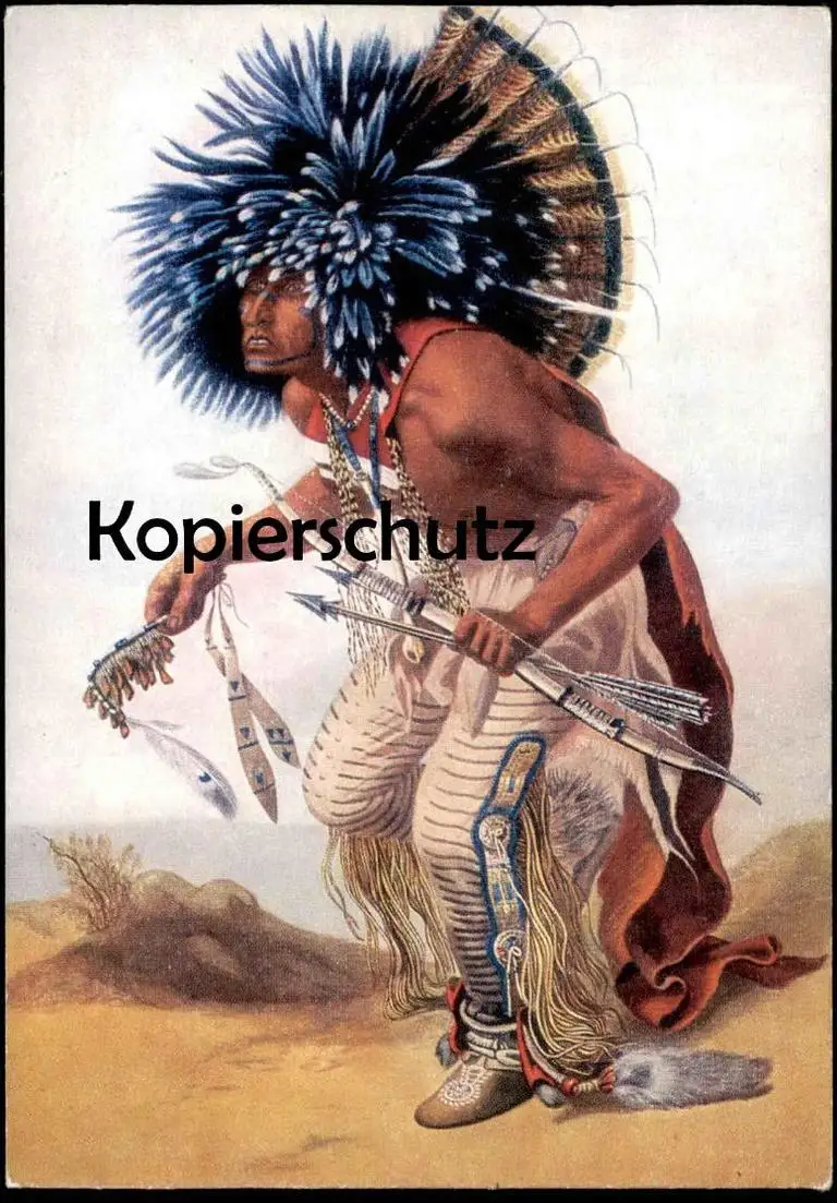 ÄLTERE POSTKARTE INDIANER NORDAMERIKA HIDATSA SIOUX KRIEGER BEIM HUNDETANZ 1832-34 INDIANS INDIOS KÖLN 1969 postcard AK