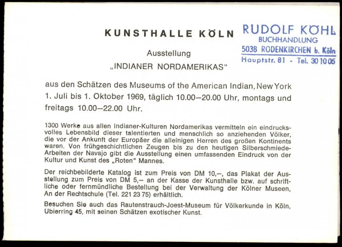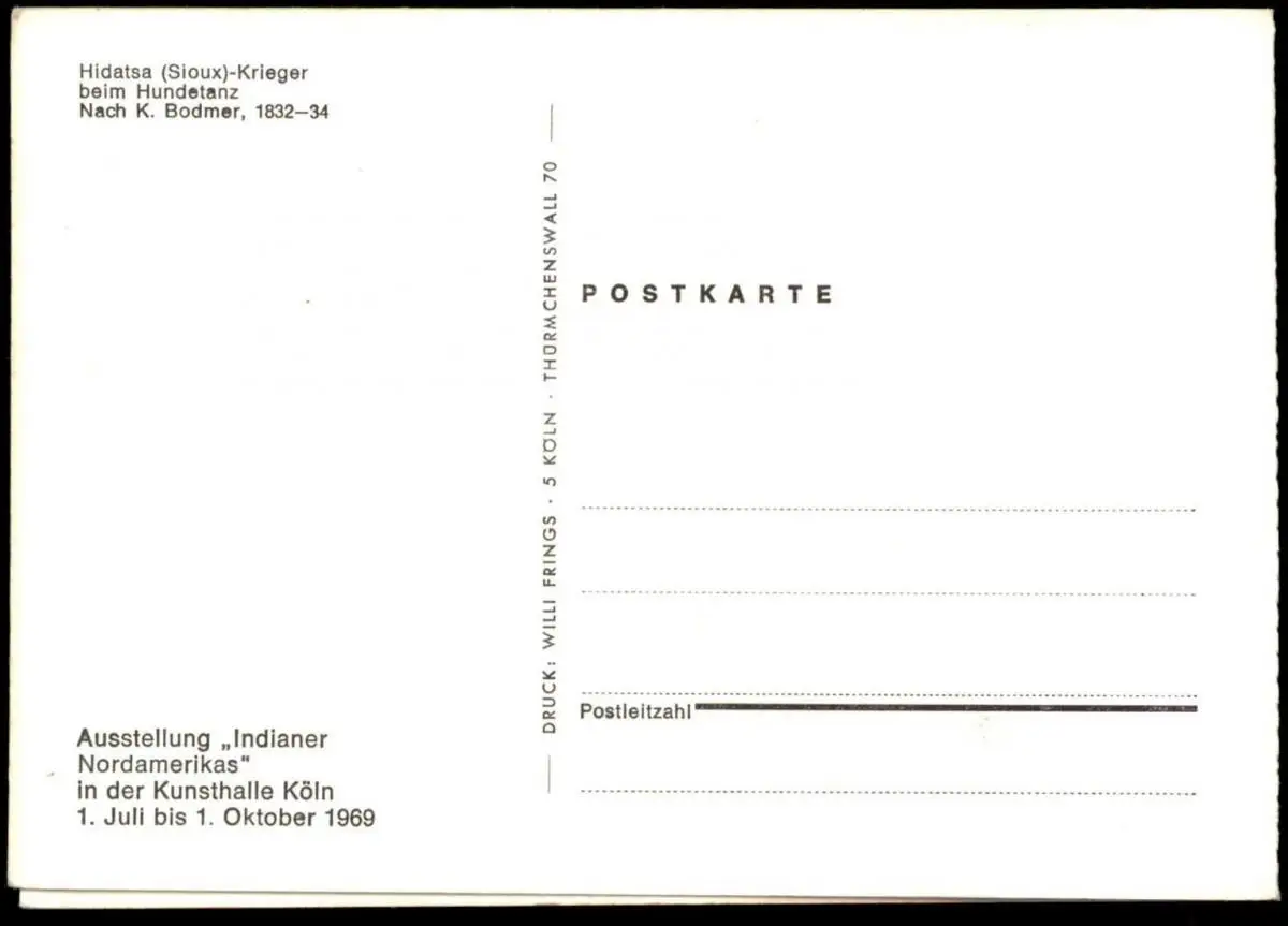 ÄLTERE POSTKARTE INDIANER NORDAMERIKAS HIDATSA SIOUX KRIEGER BEIM HUNDETANZ 1832-34 KUNSTHALLE KÖLN AUSSTELLUNG 01. JULI BIS 01. OKTOBER 1969Verlag: Willi Frings, Köln