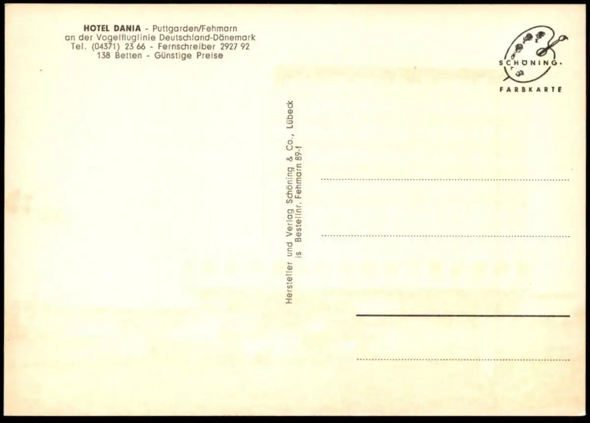 ÄLTERE POSTKARTE INSEL FEHMARN PUTTGARDEN HOTEL DANIA AN DER VOGELFLUGLINIE DEUTSCHLAND - DÄNEMARK VW KÄFERVerlag: Schöning & Co., Lübeck