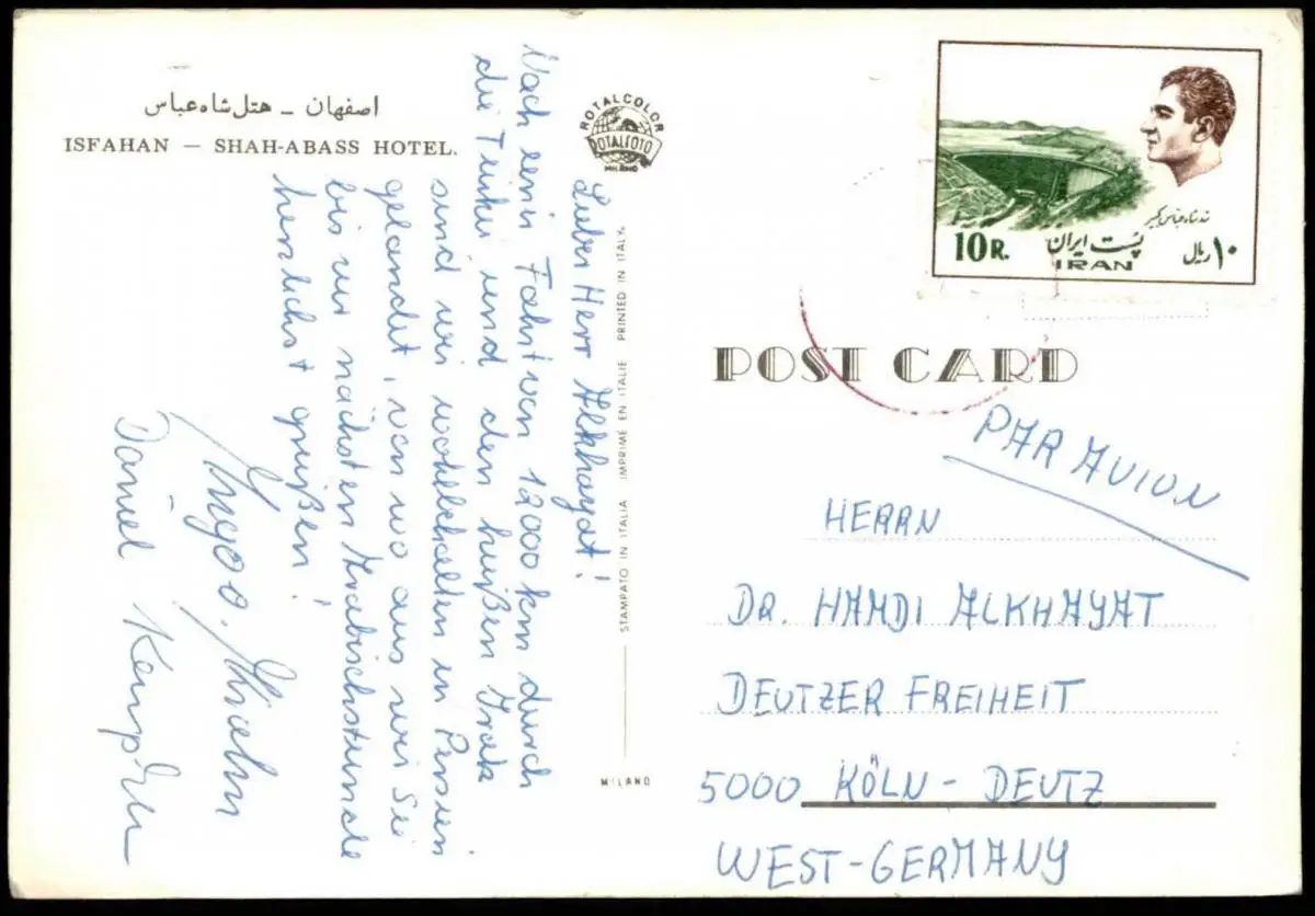 ÄLTERE POSTKARTE ISFAHAN SHAH-ABASS HOTEL