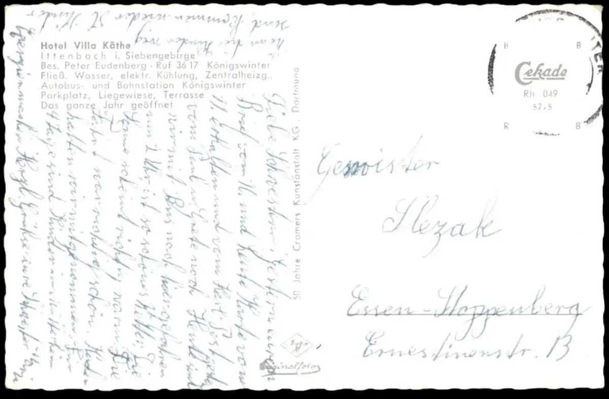 ÄLTERE POSTKARTE ITTENBACH KÖNIGSWINTER HOTEL VILLA KÄTHE SIEBENGEBIRGE BESITZER PETER EUDENBACHVerlag: Cramers, Dortmund