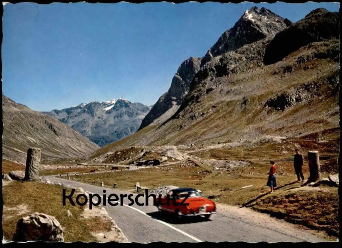 ÄLTERE POSTKARTE JULIER PASSHÖHE MIT DEN BEIDEN RÖMERSÄULEN ROTER KARMANN GHIA VW Ansichtskarte postcard cpa AK