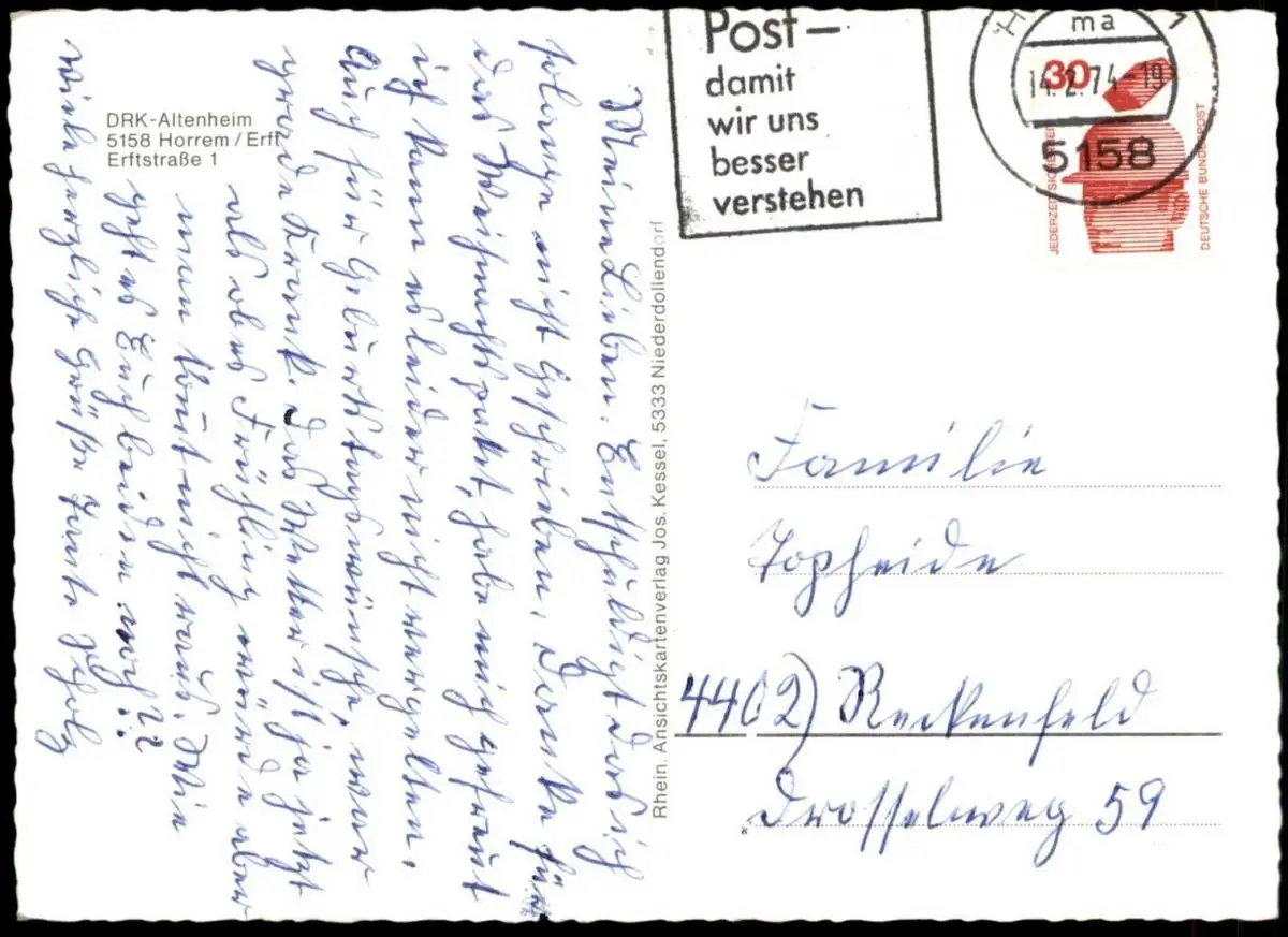 Gelaufen: 14.02.1974 mit Stempel Horrem nach ReckenfeldErhaltung (s. Scan): gut, linke obere Ecke leicht bestoßen / 915635